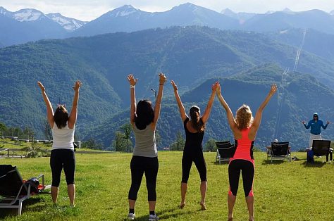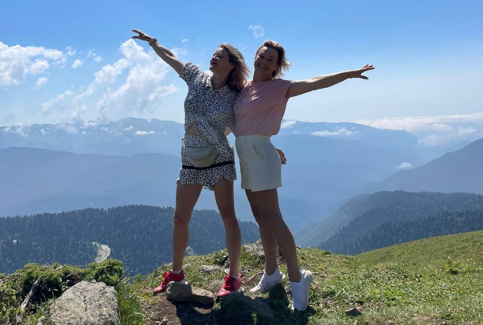 Тренажерный зал с прекрасным видом на Кавказские горы.